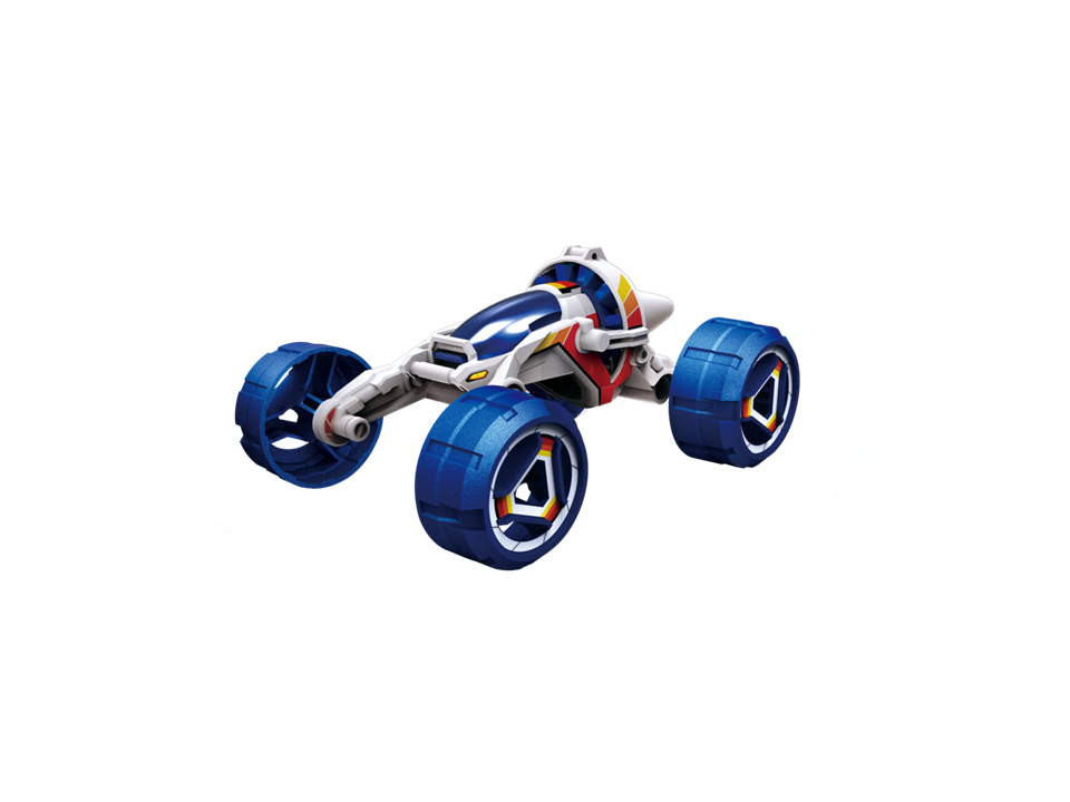 アーチ型ボディのコックピットに燃料電池をセットすると、前後の大口径タイヤとファンを回転させて、軽快に走り出します。