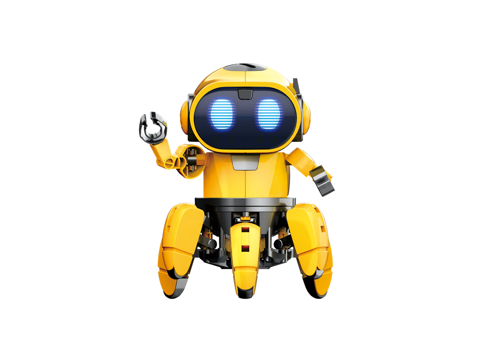 フォロは、赤外線レーザー搭載、音と光のエフェクトで感情豊かな6足歩行のロボットです。