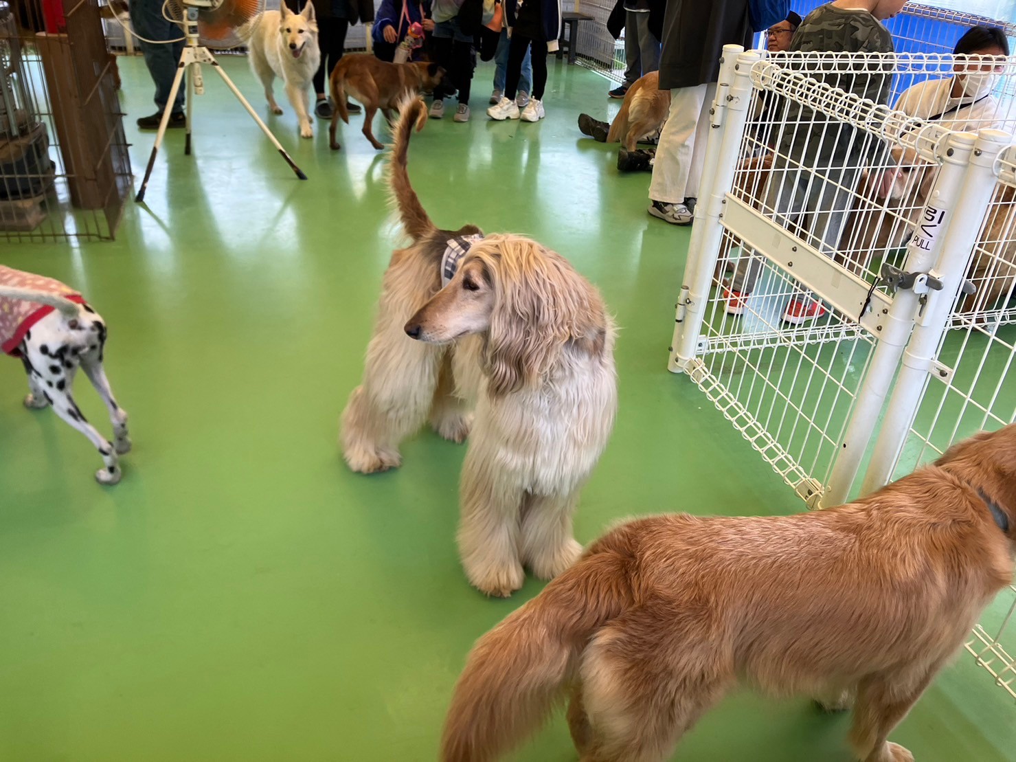ふれあいコーナーには小型犬はからなかなか会うことが出来ない大型犬までおり、さまざまな犬種のワンちゃんと遊ぶことが出来ます。