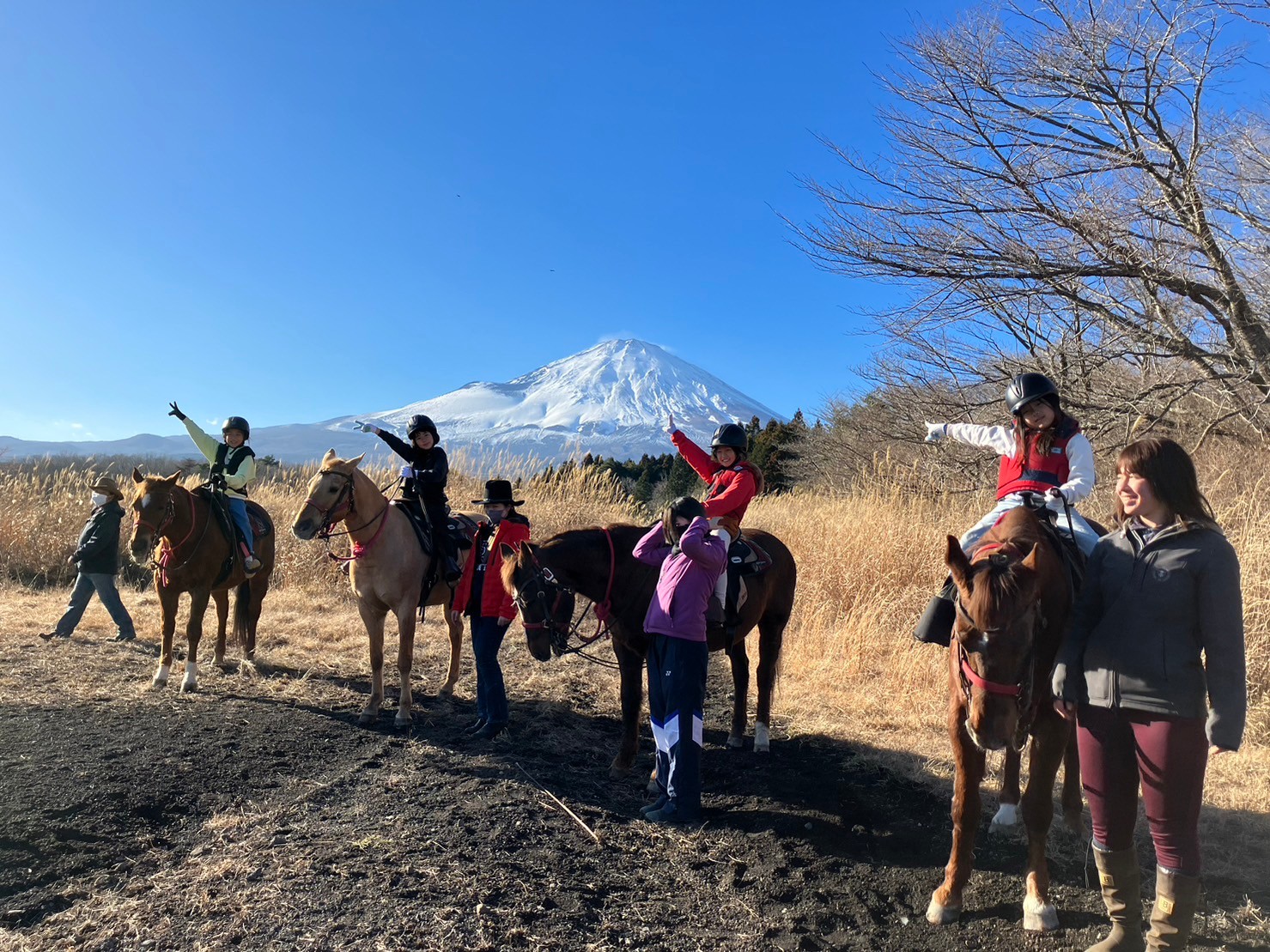 馬と心を通わせて心身ともに成長できます。騎乗レッスン以外に、手入れや馬房(馬のお部屋)掃除、馬学(馬に関する勉強)、お楽しみイベントも行います。