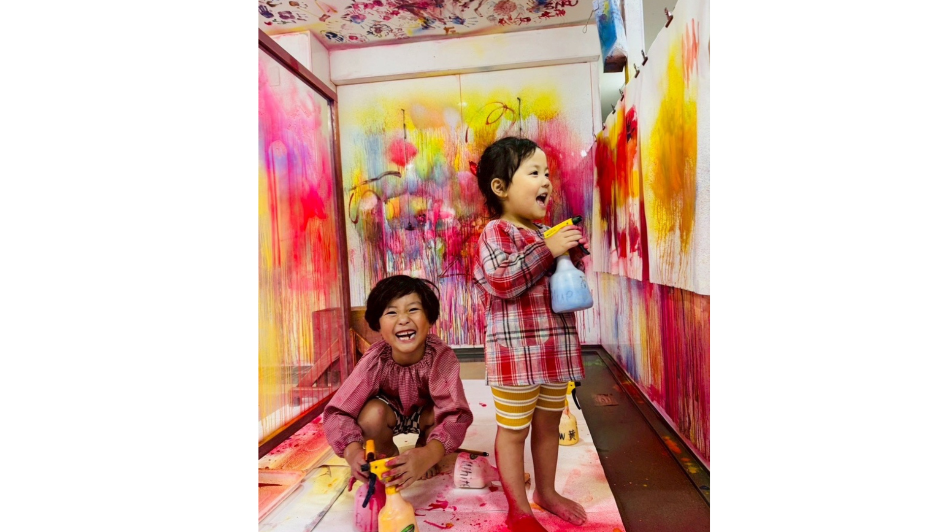 このツアーでは、天井にもアートができるアトリエで、絵の具・スプレーアート・粘土・木工作業など様々なツールを使って創造力を育むことができます。