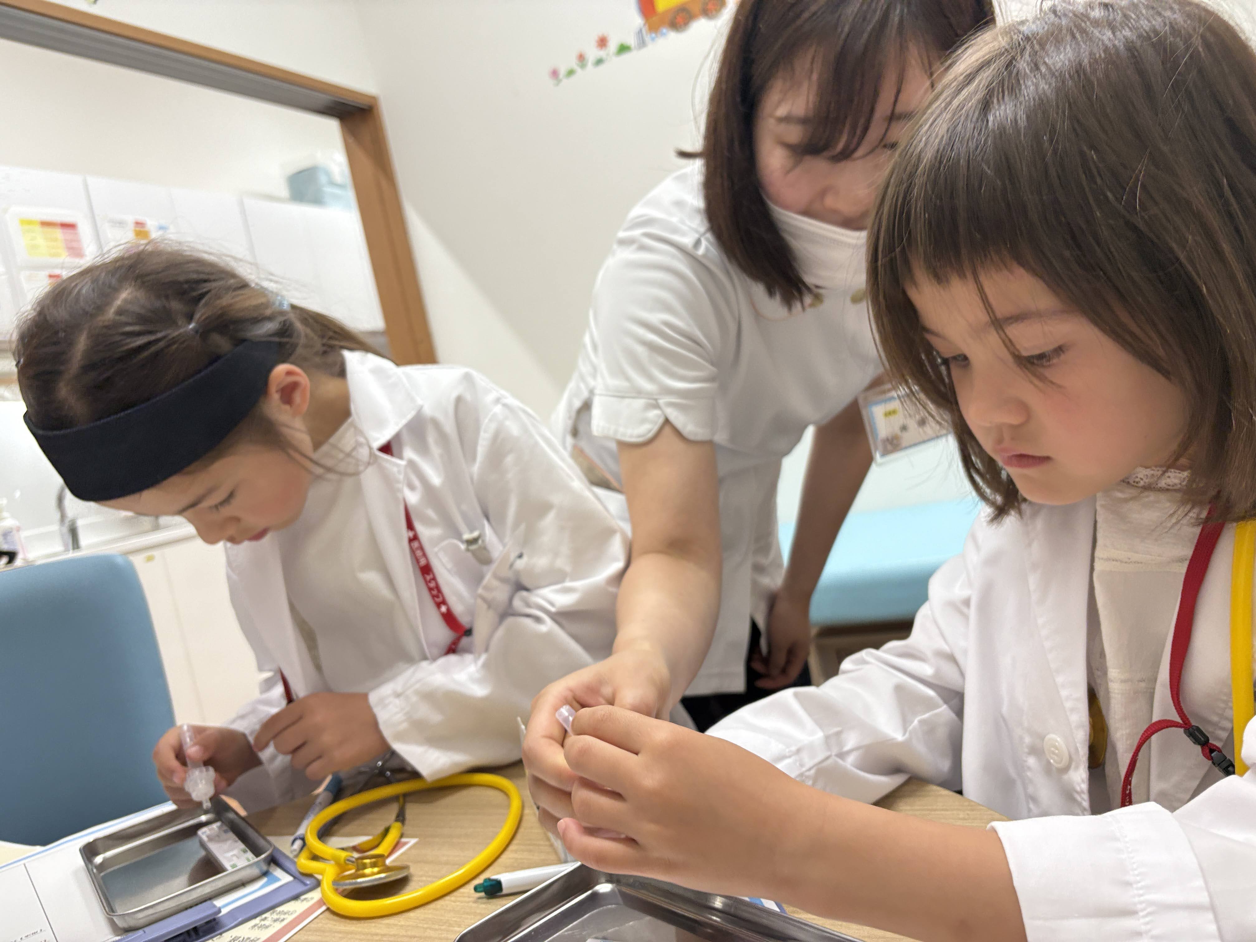 現役のお医者さん・看護師さんから直接教わる職業体験スクールです。憧れの病院を舞台に、本物の医療器具を使用した、本格的かつ楽しく体験を行います。
