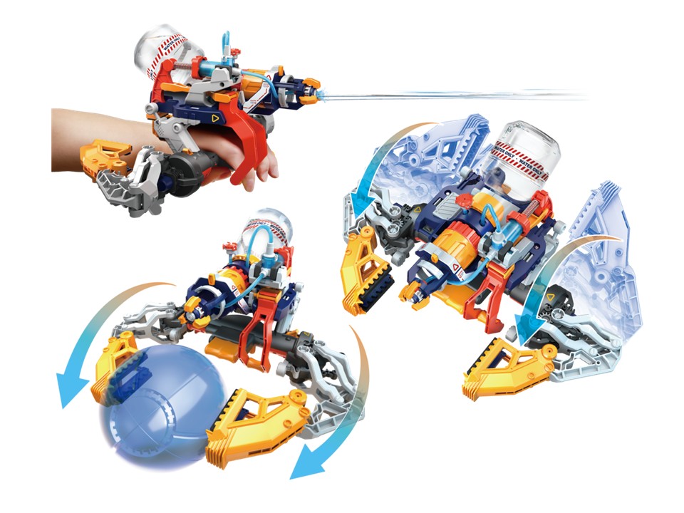 トリガーを引くと水鉄砲のように水が飛び出てくるので、夏の暑い日は、サイボーグブラスターで涼しく遊びましょう!