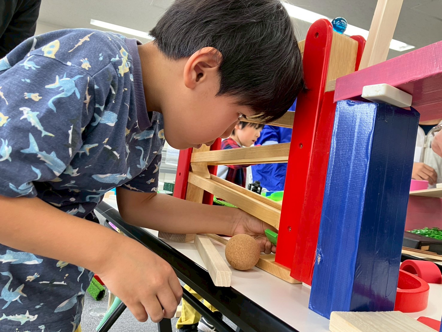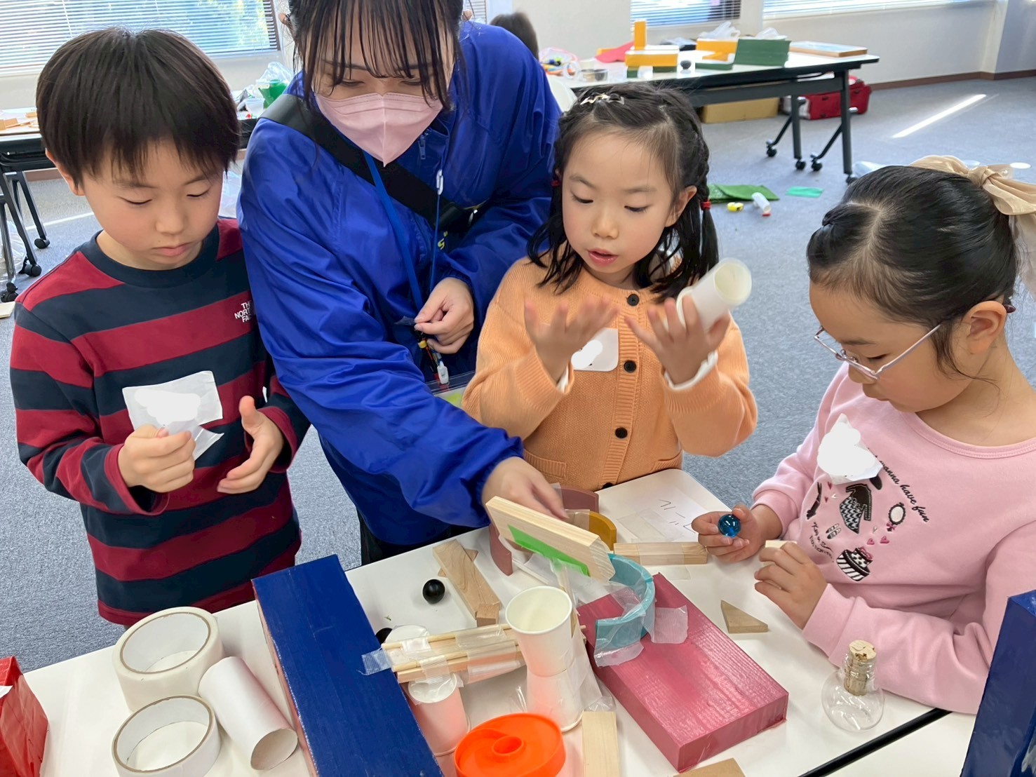 ピタコロ装置が1回目でうまく動くことはほとんどありません。何度も何度も試行錯誤して、繰り返し修正をすることで完成します。苦労して作ったピタコロ装置がうまく動いた瞬間は、毎回お子様たちが大きな歓声を上げており、とても印象的な成功体験になります。