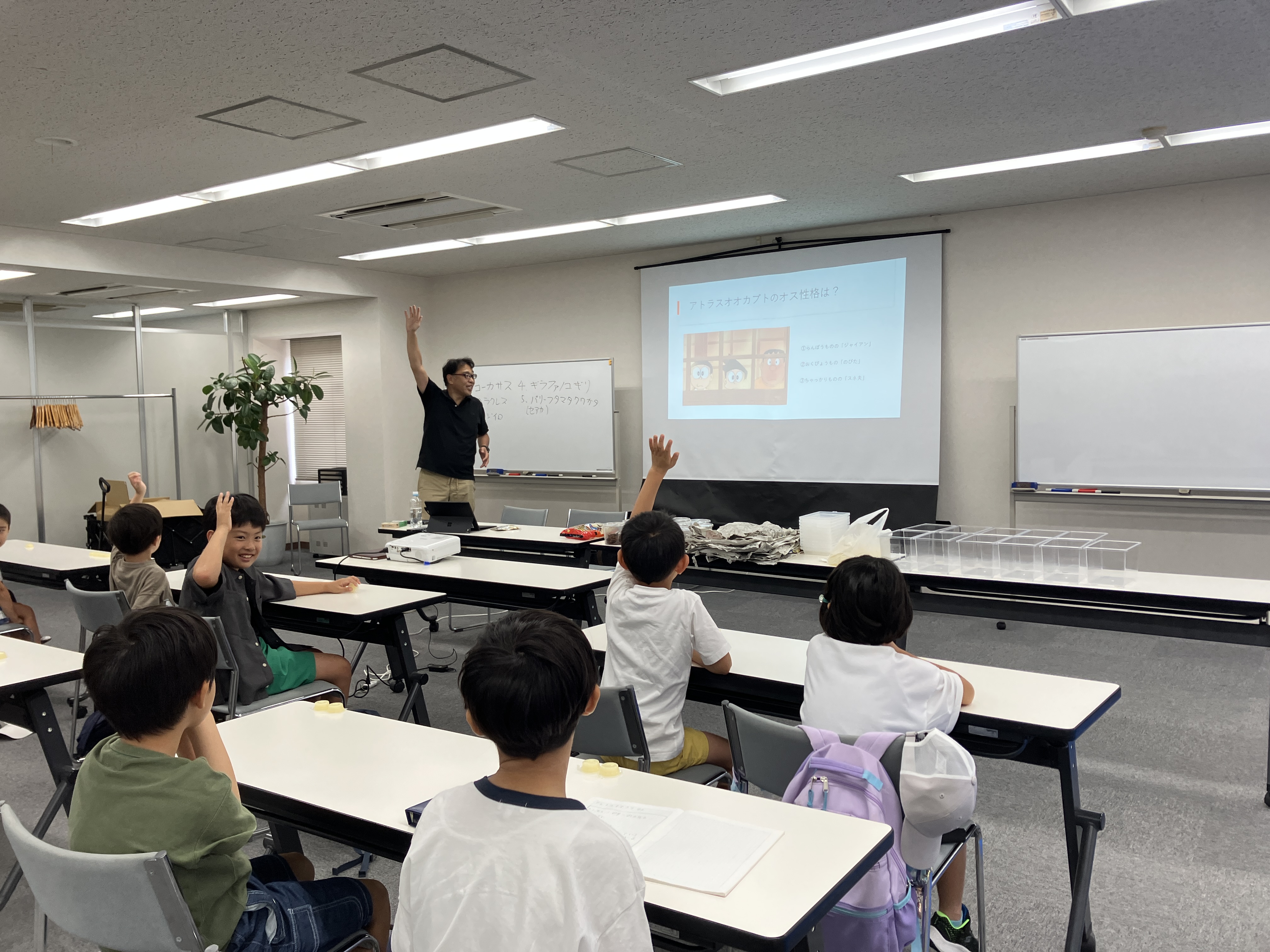 いつも昆虫教室では昆虫のお話で大盛り上がりなので楽しい雰囲気です。