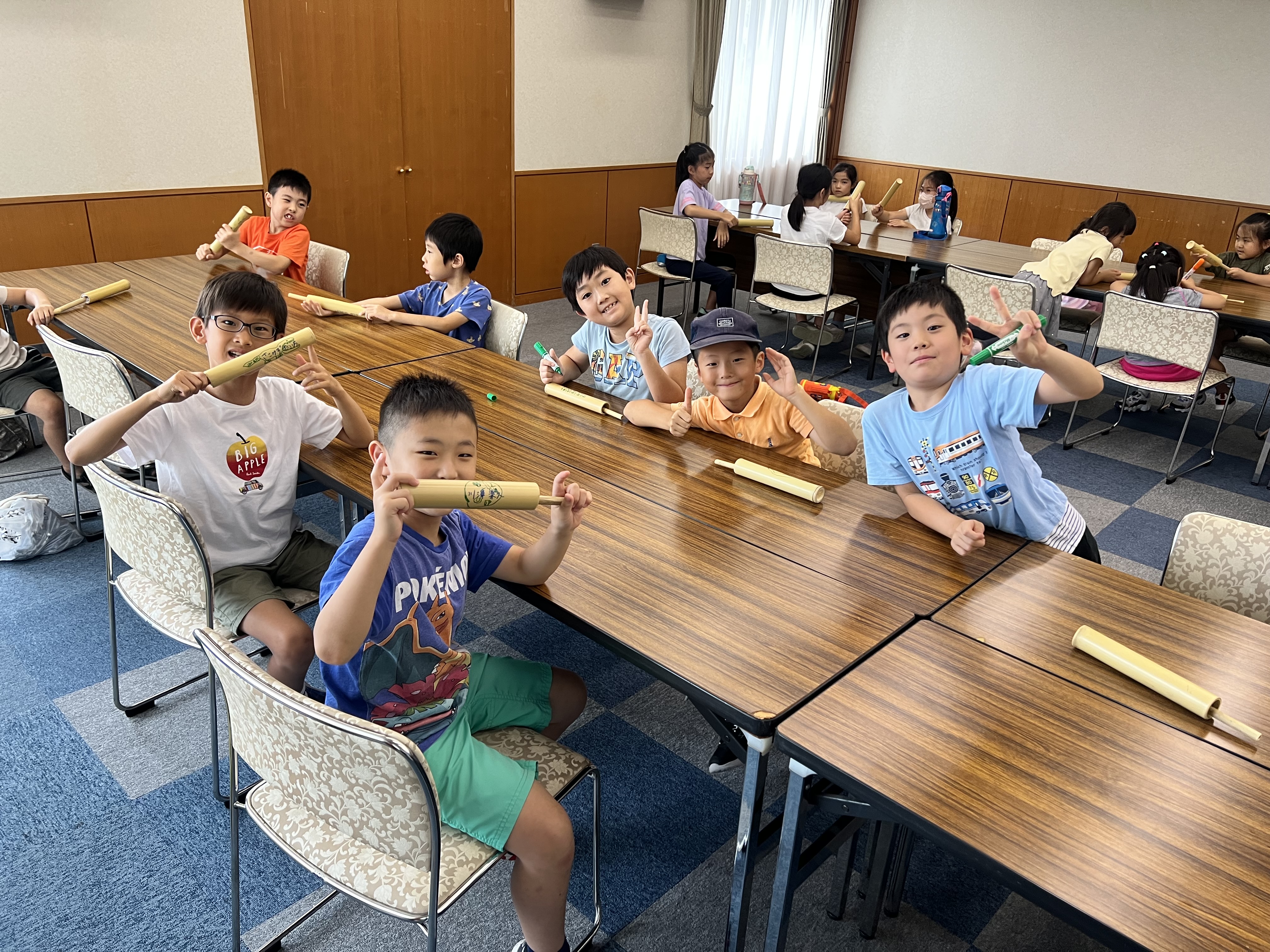 自分だけのオリジナル竹水鉄砲を作り、ホテル横の穏やかな浅瀬へ出かけて遊びます。