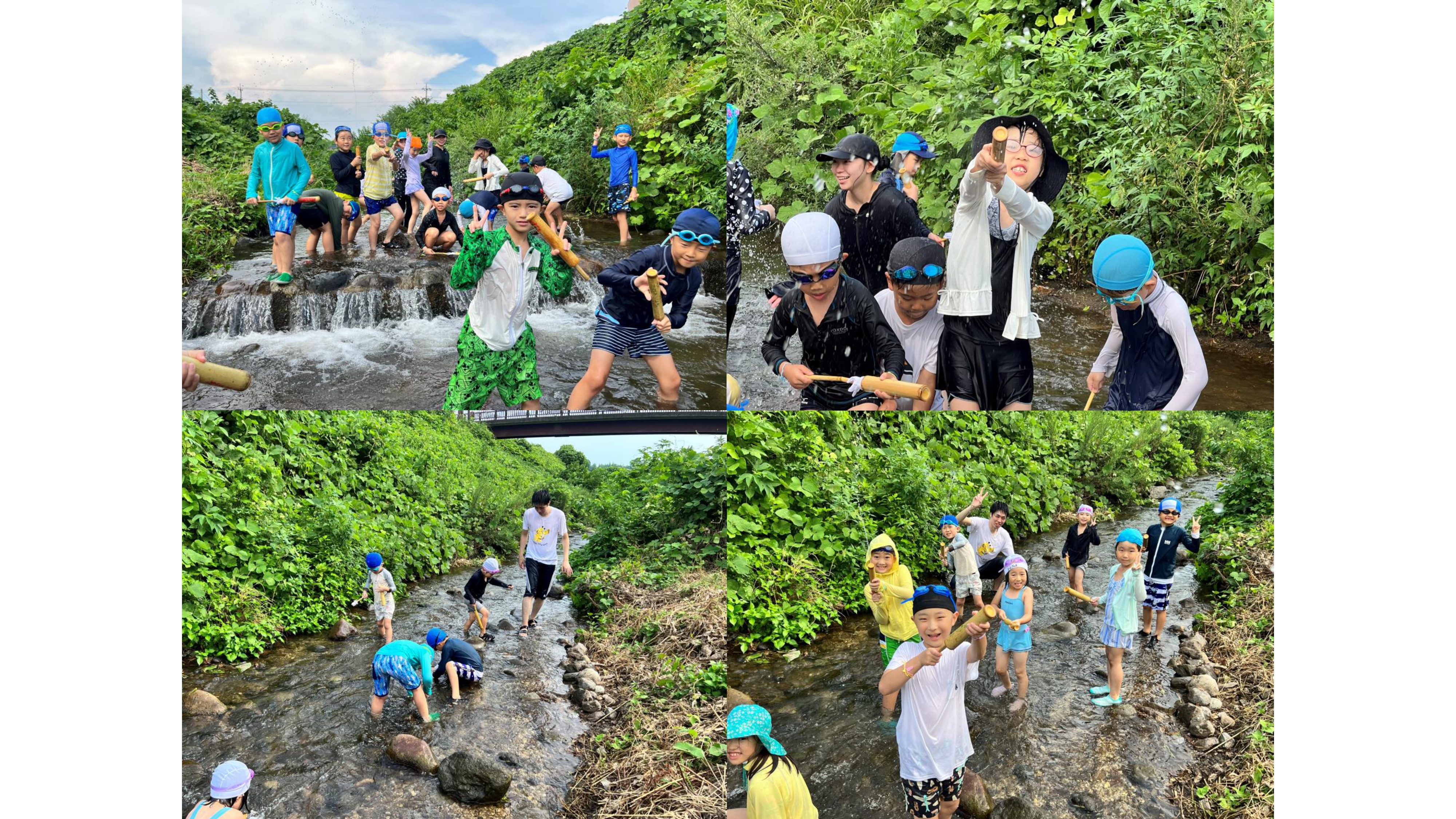 ホテル横の川はお子さまが水鉄砲を落としても拾えるほど流れが緩やかでお子様のくるぶしほどの深さの川なので、年長さんや低学年のお子様も安心して水遊びを楽しめます。