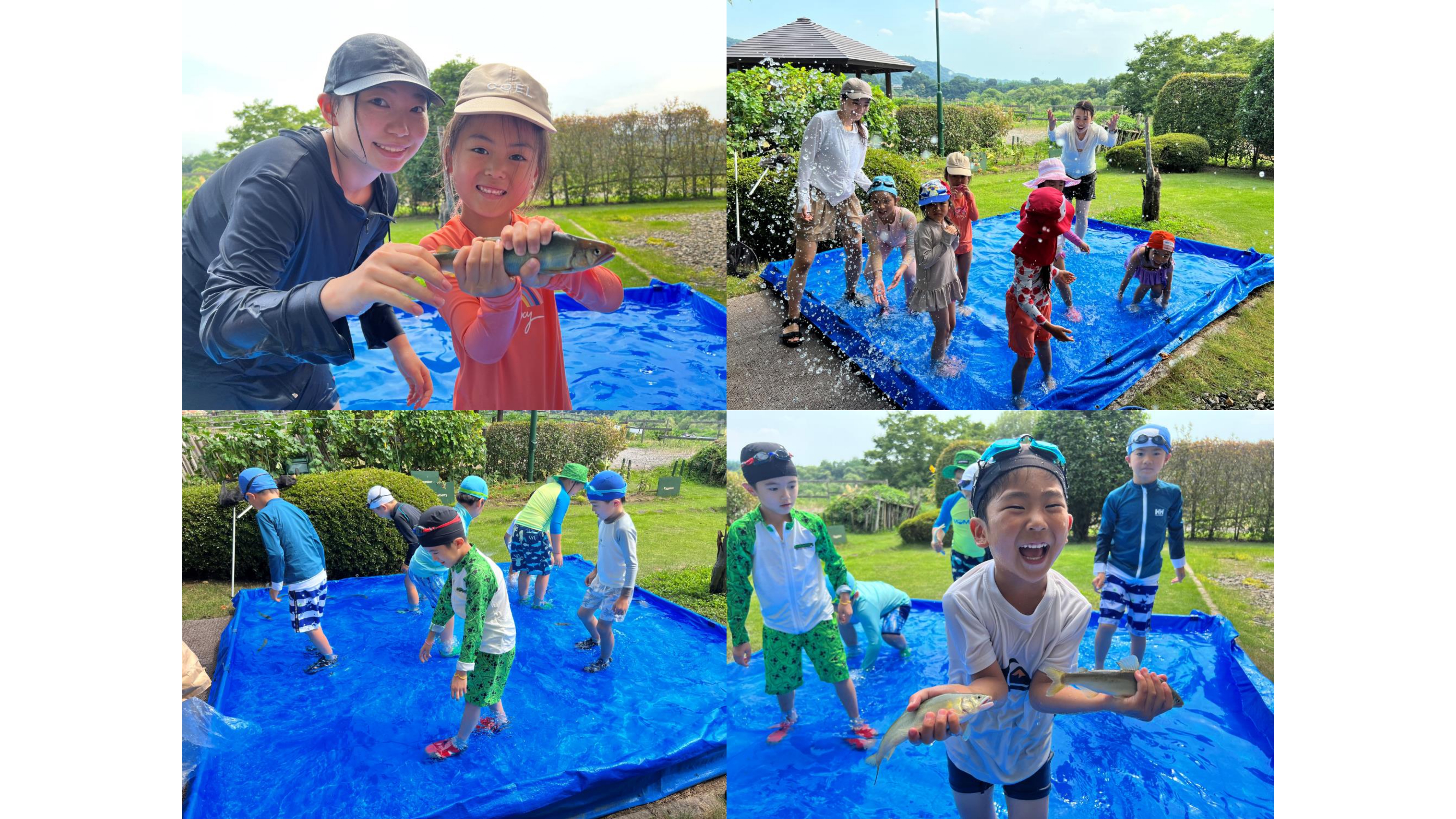 アユのつかみ取りと夕食を通じて「自分で捕まえた命をいただく」という食育の体験ができます。