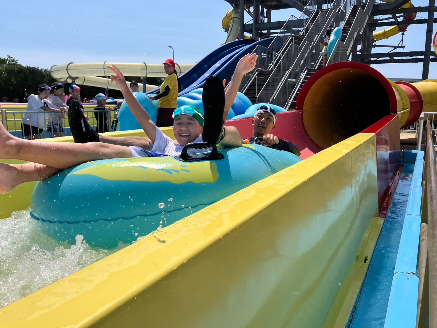 ウォータースライダーのほかには流れるプールや波のプールがあり、スライダー以外のプール遊びも楽しめます。