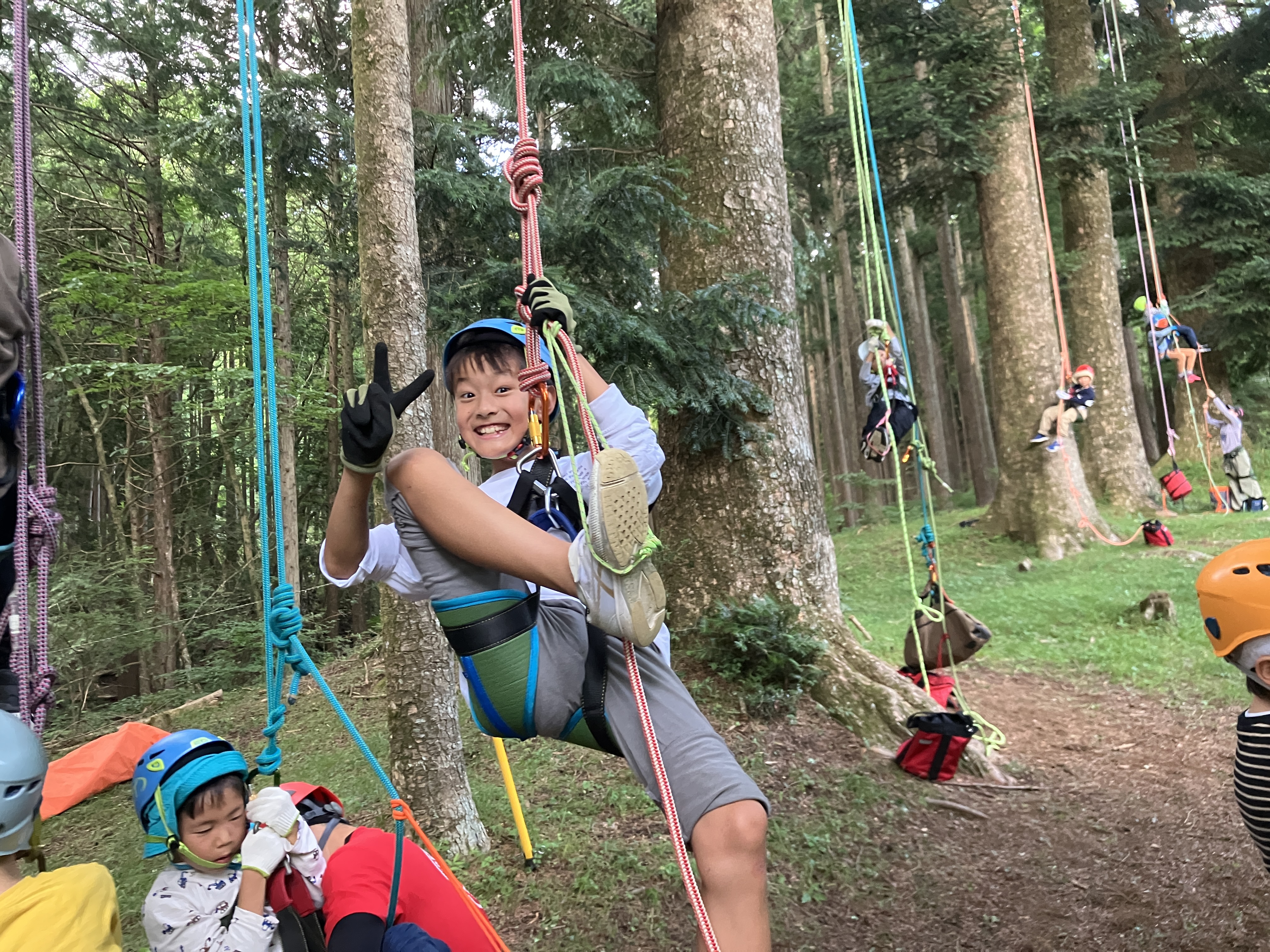 涼しい森で全身を使って高い木に登って、チャレンジ精神を養います。