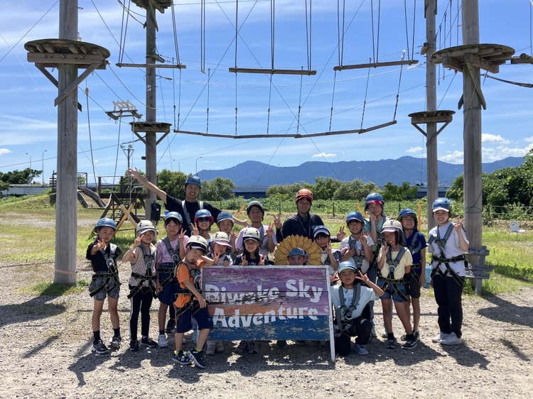琵琶湖スカイアドベンチャーは、安全装置を付けてチャレンジする本格的なアスレチックです。2種類のコースとZIPラインもあり、楽しみながらも挑戦する気持ちを育む機会にもできます。